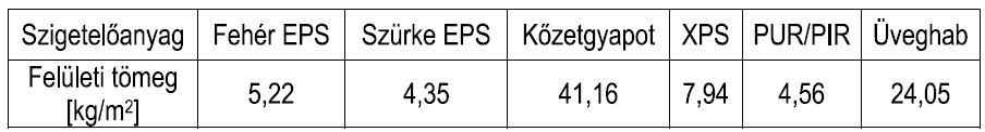 Homlokzati hőszigetelések súlya négyzetméterenként (R=5 m2K/W)
