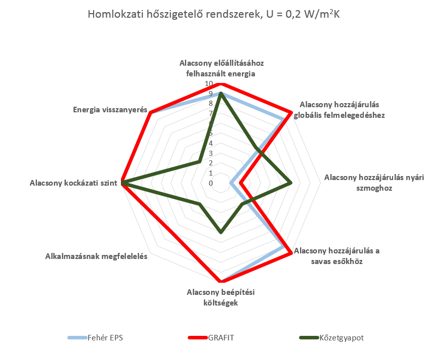 Összegezve megállapítható, hogy a ragasztott homlokzati hőszigetelő rendszerekben (THR) a legkedvezőbb értékeket a grafitadalékos EPS adja, vagyis az ökológiailag tudatos vásárlóknak ez a legjobb választás.