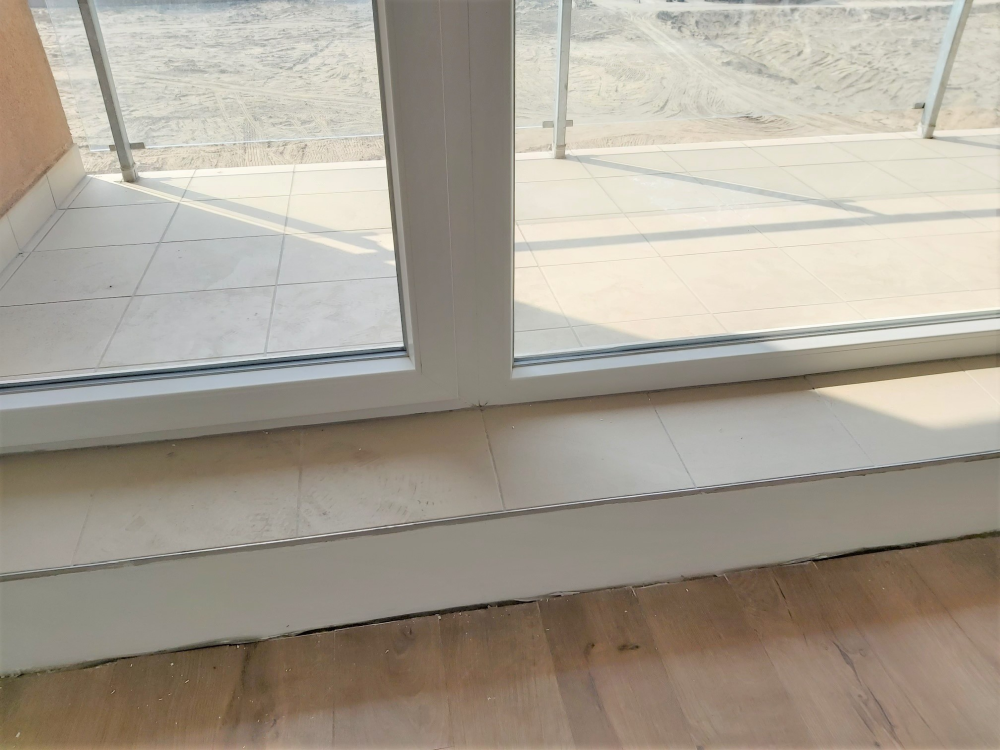 Ilyen problémás feladat az erkélyek hőszigetelése, hiszen az erkélyajtó által elválasztott külső és belső térben eltérő energetikai elvárásoknak kell megfelelni. Amíg kültéren a lapostetőkre vonatkozó szigorú hőtechnikai követelményeket kell teljesíteni, addig a belső, lakott térben – ahol fűtött terek helyezkednek el egymás alatt-felett – csak a lépéshangszigetelést kell megoldani. Ez azzal jár, hogy a lakótérben maximum 6 cm lépéshangszigetelést, míg az erkélyen ennél jóval vastagabb hőszigetelést kell elhelyezni.