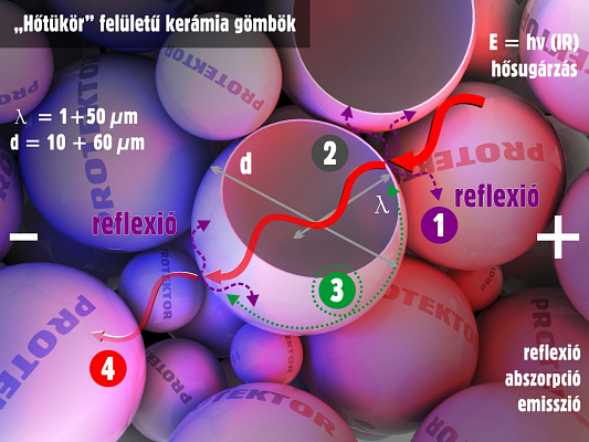1. Reflexió: a kerámiagömbök a hősugárzás 60-80 %-át visszatükrözik a felületről.