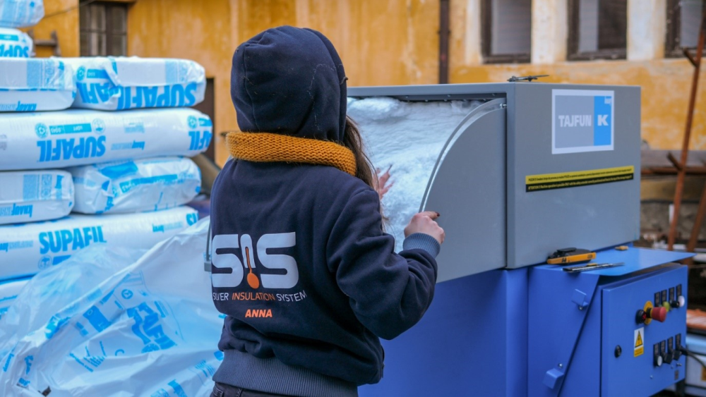 Az iskola padlásfödémének energetikai felújításához a fújt hőszigetelés tűnt a legpraktikusabb megoldásnak, mivel a kisméretű padlásfeljárón keresztül lehetetlen volt nagy mennyiségű táblás vagy tekercses hőszigetelő anyagot feljuttatni a padlástérbe. A hatalmas teret két fújógép szolgálta ki, összesen 10 raklapnyi Supafil elterítésére. A feladat egyszerű volt: egységesen, teljes felületen kellett hőszigetelő anyaggal befedni a padlásfödémet. A nagy mennyiségű szigetelőanyag tárolása nehézkes lett volna a helyszínen, emiatt a Supafil készlet rendelésekor a SIS Kft. partnerének telepére szállíttatta az üveggyapotot, onnan szolgálta ki a gépeket, amelyek a kisebb időveszteség érdekében ebédszünet alatt is felváltva működtek.