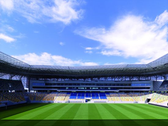 Az FK Karpati Lviv nevezetű helyi csapat új stadionjának fedett lelátói 34 915 néző befogadására alkalmasak – amely mind ülőhely. Szakértők szerint a német mintára épült lviv-i stadion az egyik legbarátságosabb légkörű volt a bajnokság helyszínei közül, s ehhez az is hozzájárult, hogy a legalsó sort mindössze tíz méter választja el a pályától, így a szurkolók egészen közelről szurkolhatnak kedvenceiknek.
