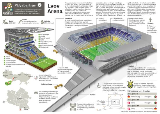 Néhány éve még a legvérmesebb ukrán szurkolók is alig hitték volna, hogy a labdarúgó-stadionok felépítésével, illetve felújításával készen lesz Ukrajna a 2012. június 8-i EB-rajtra. Végül a lengyelek társrendezői mindenkinek kellemes csalódást okoztak: fél évvel a kontinenstorna kezdete előtt átadtak minden stadiont. Lviv-ben (az egykori Lembergben) is időre felépült az aréna, így a német válogatott már ott kezdhetett a portugálok ellen.