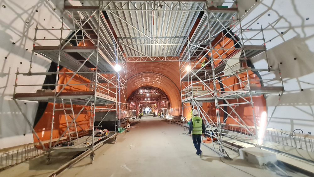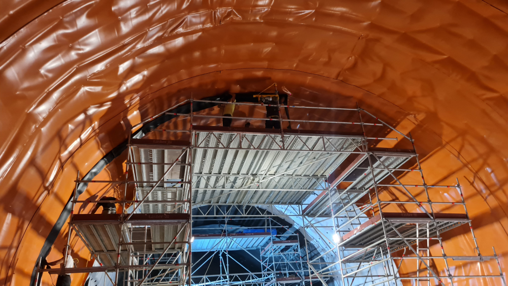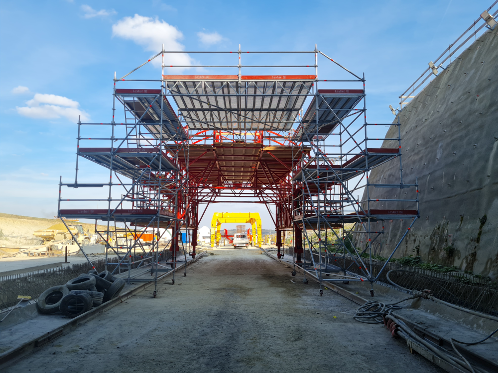 A szigetelő szakemberek a déli alagútban egy, az északiban már két darab 5 méter széles szabadnyílású, speciálisan ide fejlesztett, moduláris állványzatról dolgoztak. Az állványzatnak – a biztonságos munkavégzés feltételeinek biztosítása mellett – több speciális elvárásnak is meg kellett felelnie. Az egyik az volt, hogy az állványzatról az egész, 27 méter hosszúságú boltozat minden pontját el lehessen érni úgy, hogy ugyanakkor ne szoruljon be sehol az állvány.