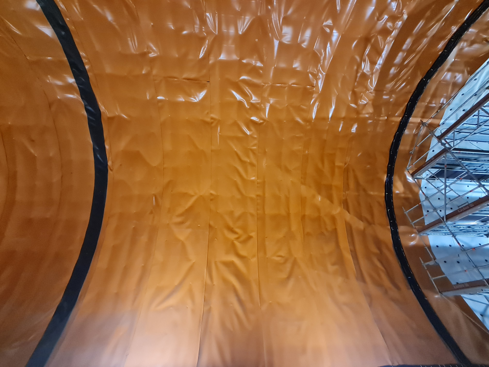A szervizalagutak és a hosszanti alagutak csatlakozása próbára tette a szigetelőanyagot, hiszen a henger-henger-csatlakozásnál a sík lemezeket át kellett fordítani. Szerencsére a PVC anyag olyan jó nyúlási paraméterekkel rendelkezik, aminek köszönhetően ennek a felületnek a szigetelése is jól kialakítható volt.