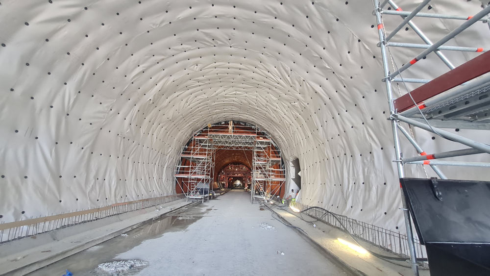 A Sopron melletti Bécsi-domb alatt készült el az ország harmadik leghosszabb alagútja. A szigetelő szakemberek speciálisan erre a célra kialakított, moduláris állványzatról dolgoztak. Egy állásban egyszerre hat méter széles felületet tudtak munkába venni, amin hat-hét ember dolgozott egyszerre. Első lépésben geotextíliát fektettek, utána helyezték el a 2 mm vastag PVC vízszigetelő lemezt. A második alagútban már két ugyanolyan állványzatról, két egymást követő csapat végezte a geotextília, majd a szigetelőlemez beépítését.