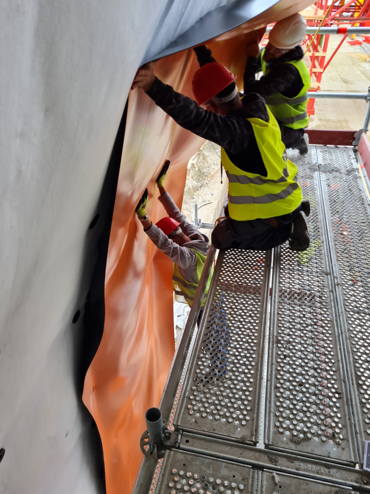 A majdnem 14 hónapos szigetelési munka legnagyobb kihívásai a vonalas műtárgy építésének kiszolgálása, logisztikája, valamint a hatalmas felületű munka monotonitása volt. Ez idő alatt 42 ezer négyzetméternyi felület szigetelése valósult meg, és több mint ezer minősített hegesztési varrat készült.