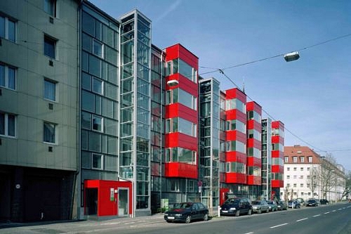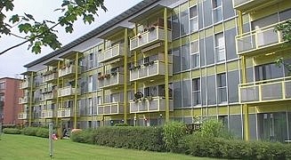 9. ábra. a) Új passzívtársasház Gap Solution homlokzati panelekkel. (Linz) (Fotó: Szűcs M.); b) Meglévő társasházak passzívház szintű felújítása (Linz) [5]