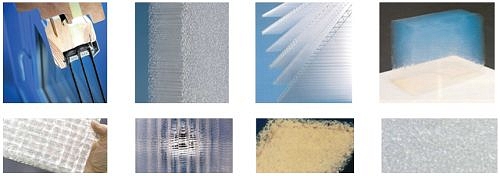 7. ábra. Részben fényáteresztő transzparens hőszigetelő anyag struktúrája, színezési változatai (Fotó: Szűcs M.)
