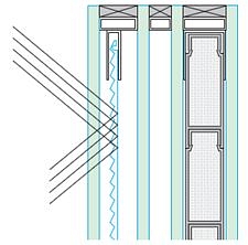 6. ábra. Részben fényáteresztő transzparens hőszigetelésű üvegezett szerkezetek alkalmazása tömör (nem fényáteresztő) határoló falszerkezetek előtt [6]