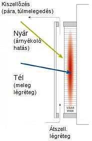a) Az üvegfal működési elve téli és a nyári viszonyok között [3]