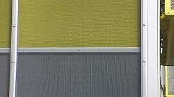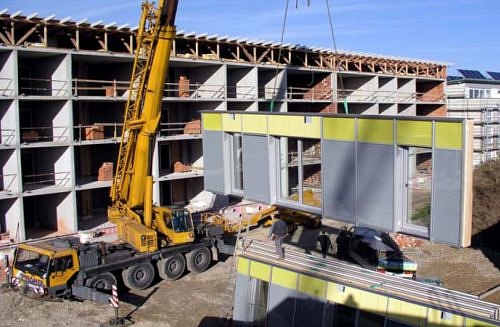 Az újrahasznosított papír hullámkarton anyagú TH anyag felülete tetszőlegesen színezhető, homlokzati beépítésére az előregyártott, üvegezett, gépészeti szerelvényekkel előszerelt nagytáblás szerkezetek jellemzők. (A transzparens hőszigetelésen kívül a hőszigetelő ablak, beépített napvédelem, elektromos vezetékek, passzívházak esetén a komfortszellőzés szellőzővezetéke is beépíthető). Az elemeket az építéshelyszínen autódaruval emelik be a helyükre (8. ábra). E panelek felhasználhatók alacsony energiaigényű új épületek építéséhez, valamint meglévő épületek homlokzati felújítása során (9. ábra).