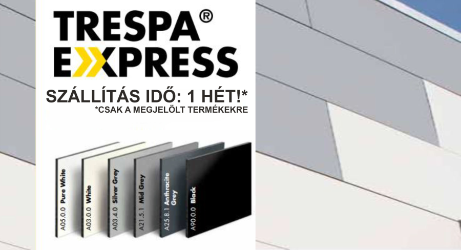A világszerte minőségi anyagairól, rendkívüli választékáról, szakszerű megoldásairól, egyedi látványvilágáról ismert Trespa homlokzatgyártó nemrég indította útjára új, várhatóan nagy sikerű szolgáltatását Trespa Express néven. Ahogy a neve is mondja, expressz tempóra számíthat a vásárló, már ami a homlokzatburkolat kiszállításának határidejét illeti.