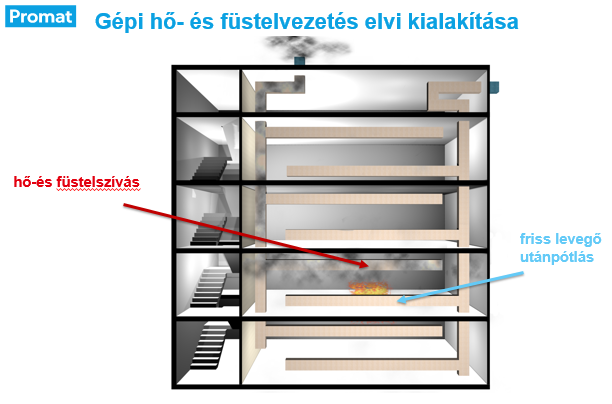 Passzív tűzvédelmi rendszernek (építészeti tűzvédelem) tekinthető minden olyan elem az épületben, amely beépítve aktív oltóhatás nélkül szolgálja a tűzmegelőzést, növeli a szerkezeti stabilitást, megnehezíti a tűz keletkezését, adott ideig meggátolja a tűz tovább terjedését. Ilyen intézkedés például a füst elvezetése, illetve a friss levegő utánpótlása. Sok épület kialakítása folytán nem alkalmas a gravitációs hő- és füstelvezetésre, ezért ilyenkor gépi úton, kényszeráramoltatással kell a keletkezett hőt és füstöt elvezetni, illetve biztosítani a friss levegőt.
