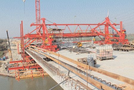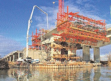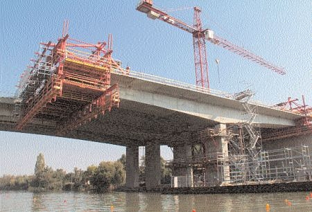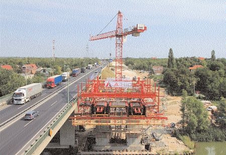Mindössze egy pár zsaluzókocsival történt a szabadonbetonozás a Soroksári-Duna-ág hídjának bővítése során. A híd teljes, 21,5 m széles keresztmetszete két főtartóra volt felfüggesztve