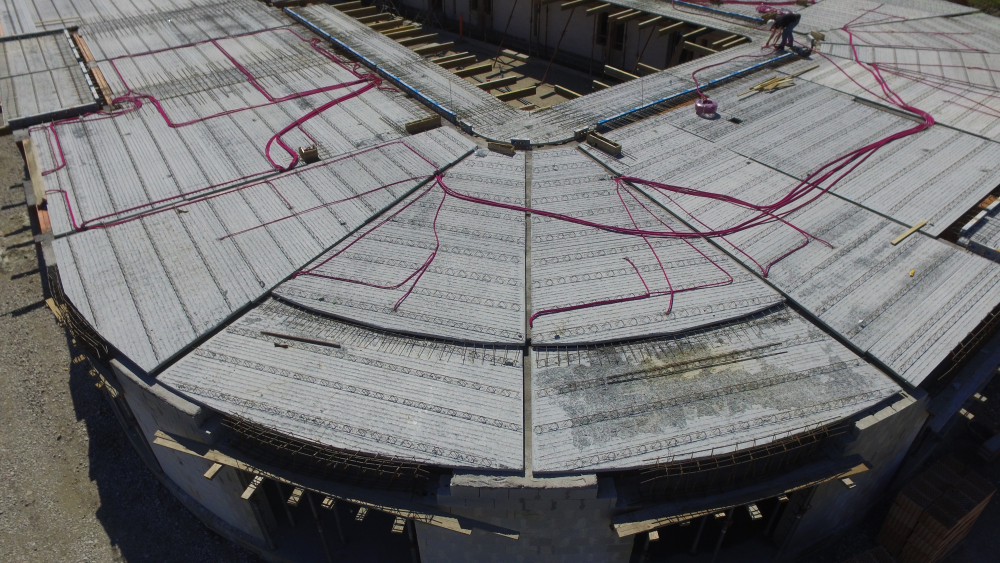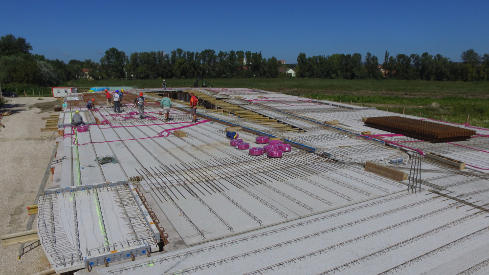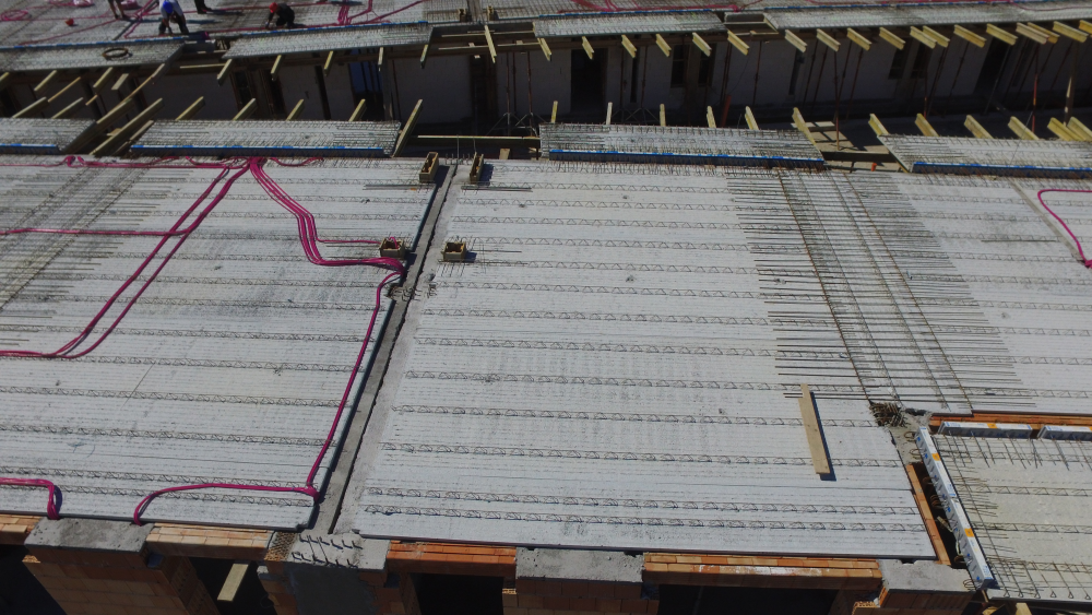 A kivitelezés során a szükséges plusz vasalattal és felbetonnal együtt alakul ki a kifejezetten jó akusztikai érétkeket kínáló kész födém: 20 cm esetén a minimálisan kötelező 51 dB-lel szemben a léghanggátlási érték 56 dB.