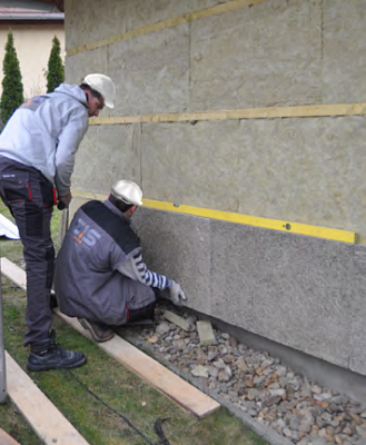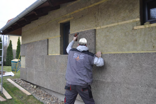 - 50×50 mm-es lécváz rögzítése a homlokzaton;