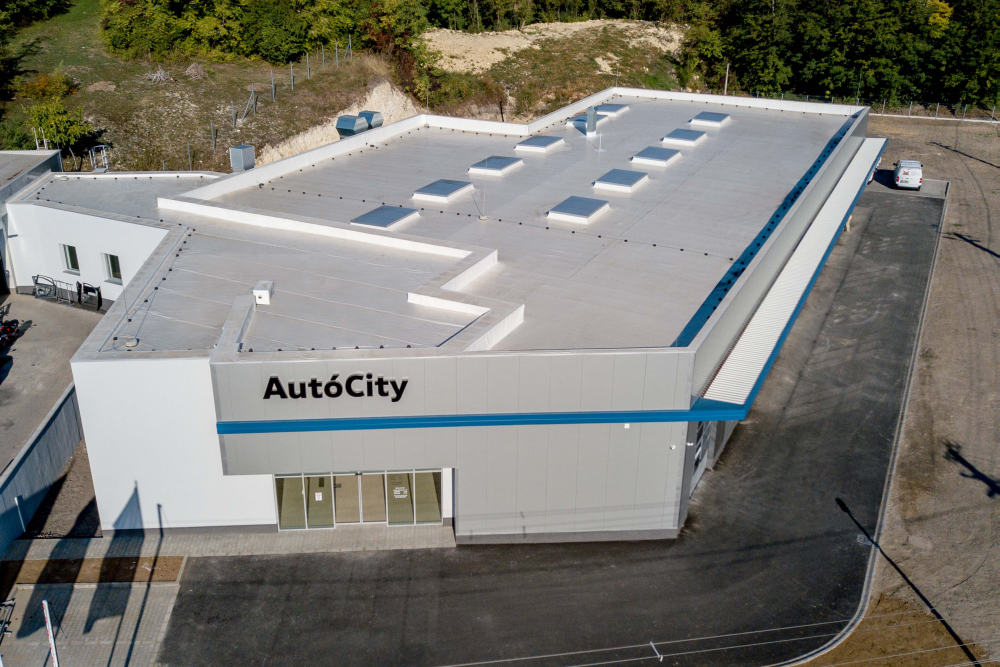 Az év elején egy 1300 m2-es karosszériajavító csarnokot építettek Pécsen az Autocity márkakereskedés és szerviz megbízásából, ahol a rácstartós acélszerkezetű lapostetős csarnoképületet 150 milliméter profilmagasságú teherhordó trapézlemezre készített hőszigetelt lágyfedéses födém fedi, az oldalfalakon 100 milliméter vastag poliuretán mag hőszigetelésű szendvicspanel burkolattal. A projekt mindössze 6 hónap alatt valósult meg.