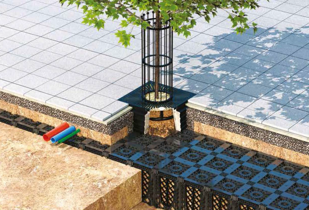 Városi fatelepítés – a gyökércella védi a fát és védi a burkolatot