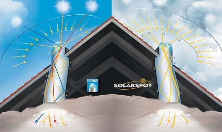 A Solarspot bevilágító rendszer alkalmazásával természetes fénnyel világítható meg bármilyen helyiség, akár több tíz méter hosszú elvezetéssel is. Az áruházakban, raktárakban, iskolákban, iroda- és lakóházakban alkalmazható rendszerrel jelentősen csökkenthető a világítás energiaköltsége.