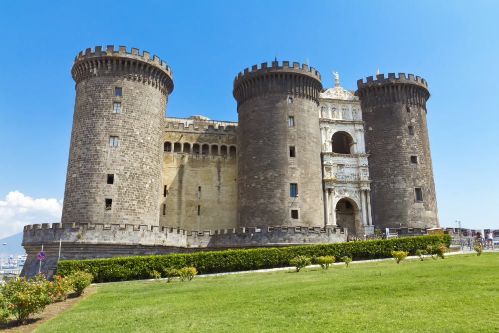 Királyi rezidencia, erődítmény, a kultúra fellegvára – a Castel Nuovo közel ezer esztendeje Nápoly leghíresebb jelképe, történelmének fontos színtere és alakítója. Építése 1279-ben, I. Anjou Károly uralkodása idején vette kezdetét (innen ered a közismert „Maschio Angioino”, azaz Anjou-erőd elnevezés), majd az évszázadok folyamán további bővítésekkel és átalakításokkal folytatódott. (A kép forrása: Adobe Stock)