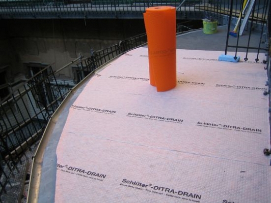 Az új építéseknél, illetve teraszok, erkélyek felújításánál egyaránt alkalmazható Ditra és Ditra-Drain lemezek jellegükből adódóan egyenletes vastagságú réteget képeznek, optikailag ellenőrizhető folytonosítási és csomóponti megoldásokkal. A Ditra további előnye, hogy talajra fektetett teraszoknál – alulról nyitott és összefüggő rácsszerkezetének köszönhetően – jelentős a talajpáranyomás-kiegyenlítő funkciója.