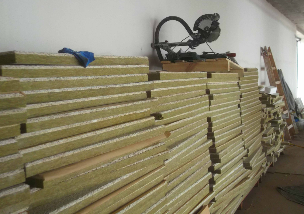 A (fagyapot-kőzetgyapot) kompozit lapokat a beton falszerkezethez lécvázak segítségével, dübelezéssel rögzítették a szakemberek (szakipar: Terra-Korr Kft.). A helyszínen szükséges méretre vágást egyszerű asztali körfűrésszel oldották meg.